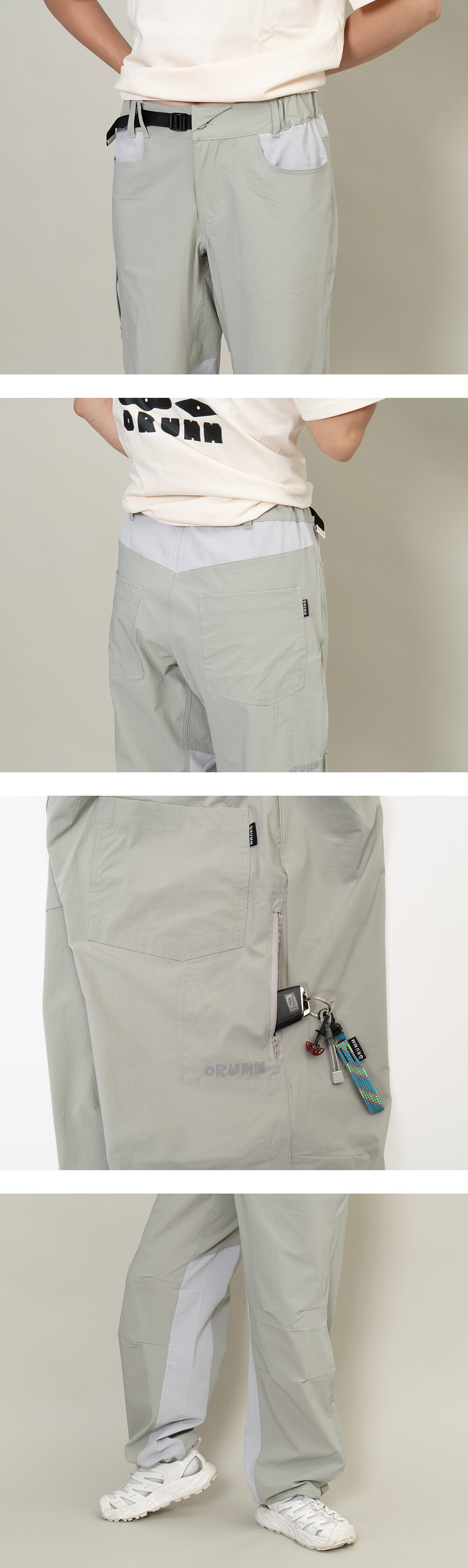 -주머니, 엉덩이 위쪽, 허벅지 안쪽 스판메쉬 원단을 사용하여 어프로치 및 등반 시 공기유통이 좋습니다.