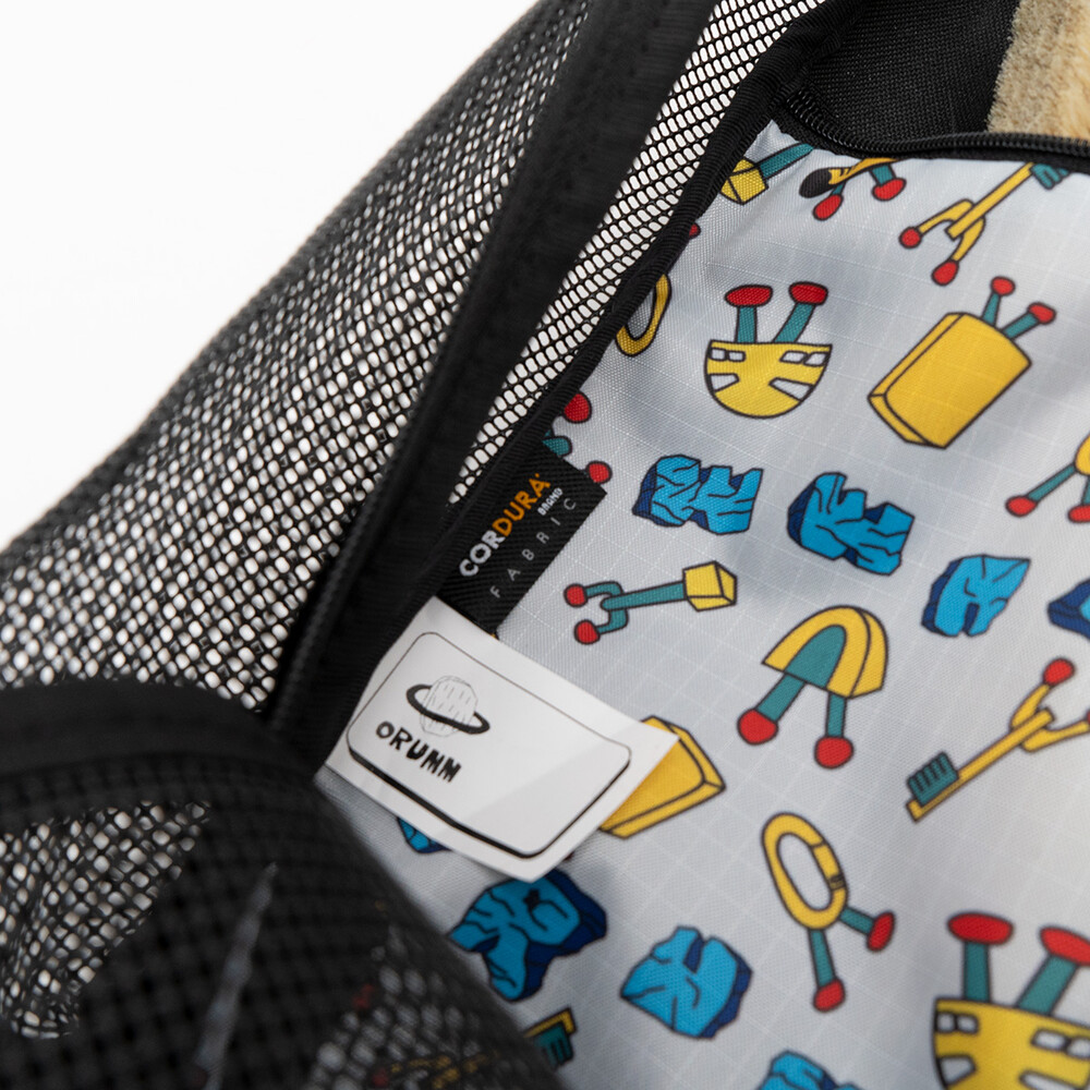 바닥 원단은 코듀라 원단을 사용하였고, 네임펜으로 이름을 쓸 수 있는 케어라벨이 함께 있습니다.