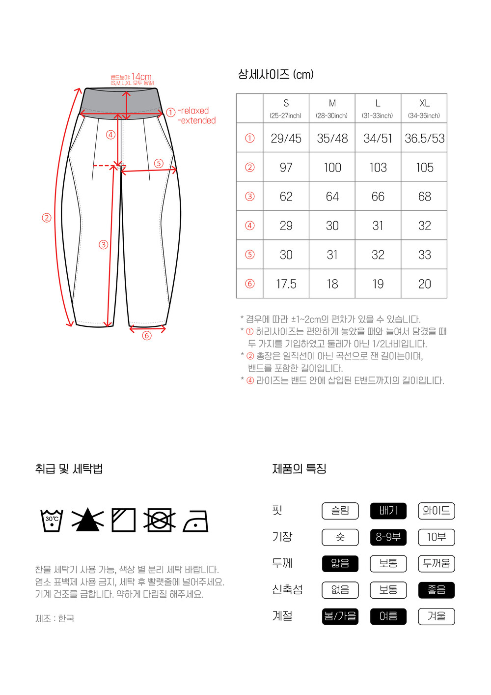 **기존 오름 바지를 입으시는 사이즈보다 한사이즈 up 하여 구매하시는것을 추천 드립니다.