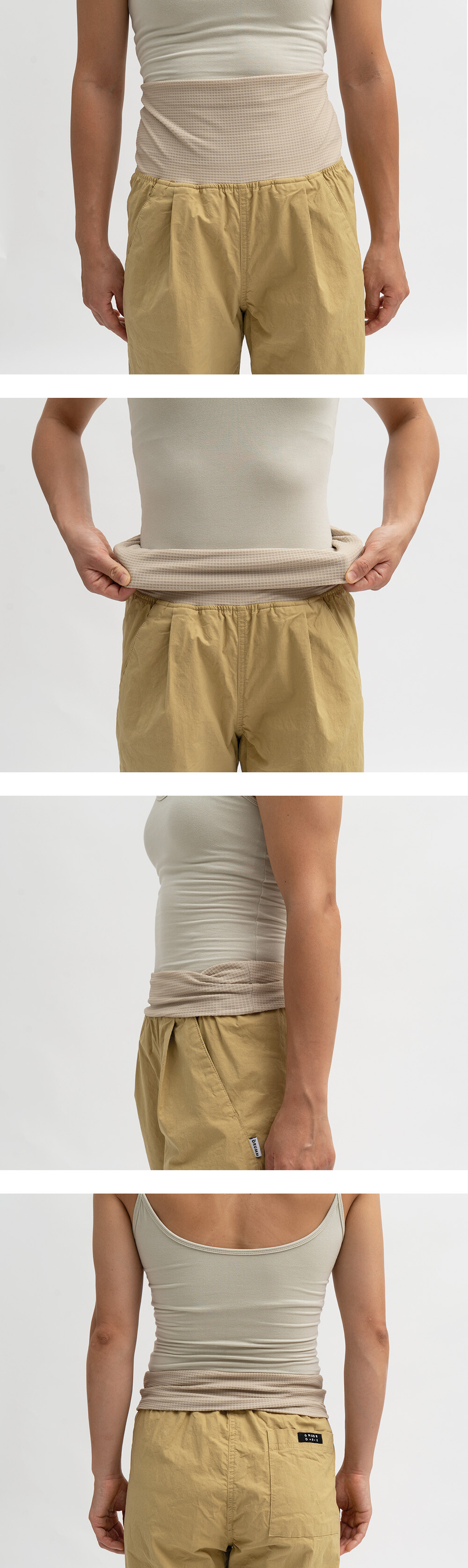 넓은 허리밴드는 배를 따뜻하게 덮거나, 반으로 접어 단정히 연출하실 수 있습니다.